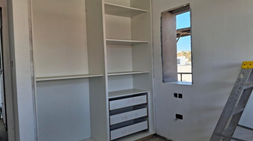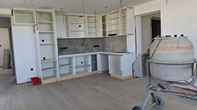 A 2 bedroom Penthouse with private roof garden close to completion in a small residential building consisting of only 6 apartments in a quiet located yet with very easy access to the highway. – The Energy Efficiency is category A insulation. – The apartment is open plan with living and dining area, shower/wc and 2 bedrooms (master en-suite shower), covered veranda, storage room, covered parking and private roof garden. The price is inclusive of vrv and air condition.