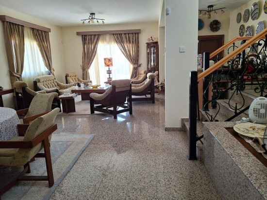A truly well built solid house located in a quiet residential area in Agios Silas, the house is spacious with large living and dining room, spacious kitchen with tv area and fireplace, secondry kitchen and guest wc. The upper level with four bedrooms (master with en-suite) and walk-in wardrobes. The outside area large paved, has bbq, tradition oven with garden area, truly lovely also covered parking. The house is every saving has photovoltaic panels. The house has title deeds.