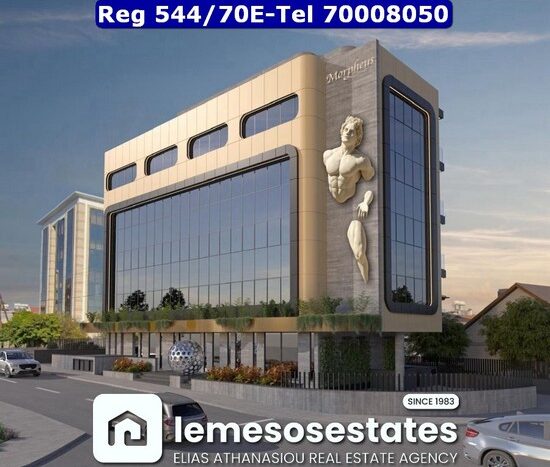 Stunning brand new office building IN the heart of Limassol with easy access to all areas of Limassol luxury offices with recreation areas for the staff with readiness of March in 2026: The office is is designed with modern architecture and cutting-edge facilities, the project will be ready for occupancy in March 2026. The building is available as a full-building lease offering flexibility to meet the diverse needs of international companies, financial institutions, professional services, and dynamic SMEs. – Total office covered area 1164 sqm – Ground floor covered area 124 sqm – 1,2,3,4 floors covered area 984 sqm – Alfresco rooftop covered area 56 sqm uncovered area 80 sqm – Covered verandas 93 sqm – Uncovered verandas 31 sqm – 25 parking places (19 covered) + 6 uncovered – The office features: – Alfresco rooftop – Gym – Sauna – Hydromassage showers – VRV air conditioning system – Security cameras – Secured entrance to the building – Photovoltaics – Acoustic suspended Ceilings – Raised floors – Energy rating: A – The building will be delivered on March 2026.