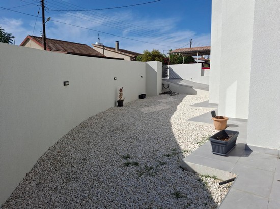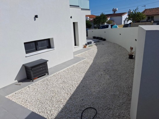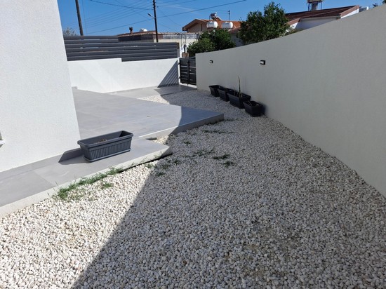 Modern 3 bedroom semi detached house in Kolossi in immaculate condition. The house is located in a q quiet residential neighbourhood it has on the ground floor living/dining room 1 bedroom and shower/wc, the upper level with 2 bedrooms, bath/wc, small storage area. The outside area with covered parking and beautiful pebbled garden.